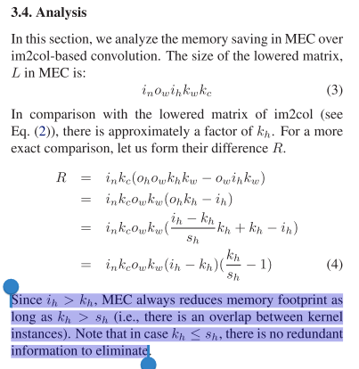这节分析了相比于im2col,MEC减少了多少内存占用。